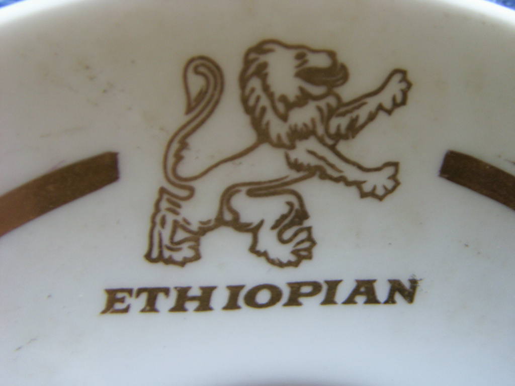DESCRIPTION -- China saucer from the Ethiopian Line shipping company and the size is 5" (13cm) wide and it is in a fantastic condition (click on the picture to see the company name and logo engraved on the item).