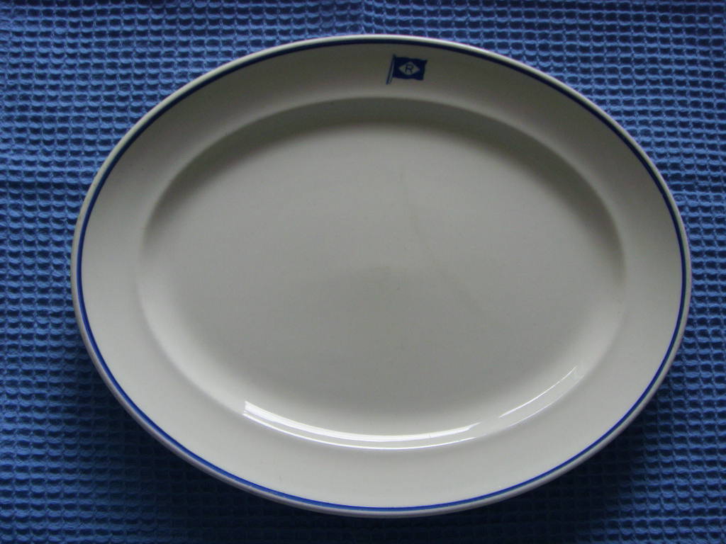 DESCRIPTION -- Great item to purchase and an original from this shipping company. It is a large oval shape china dinner plate from the Rasmussen Line of Norway and is in a very good condition with the size being 13" (33cm) x 10" (25cm). The postage is higher due to the heavy weight of the item.