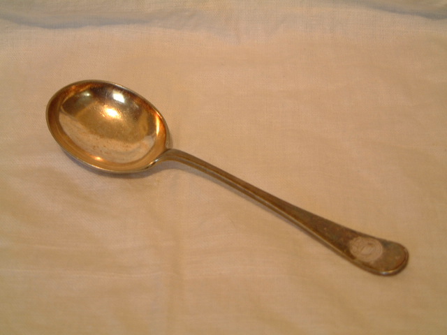 DESCRIPTION -- Original silver-plated soup spoon from the Atlantic Transport Line Shipping Company which is an early piece and shows the company belt and name on the handle and the size is 7" (19cm) long.
