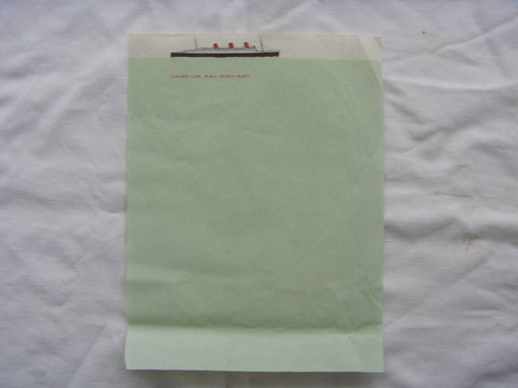 DESCRIPTION -- Original from the period several pieces of headed writing paper (approx. 15) from the RMS Queen Mary which are in an as new excellent condition.